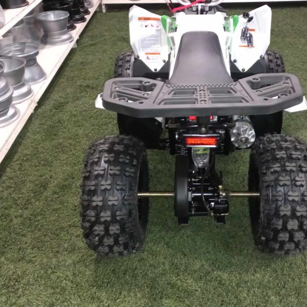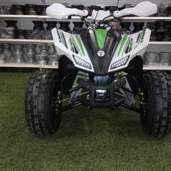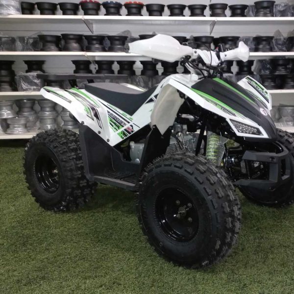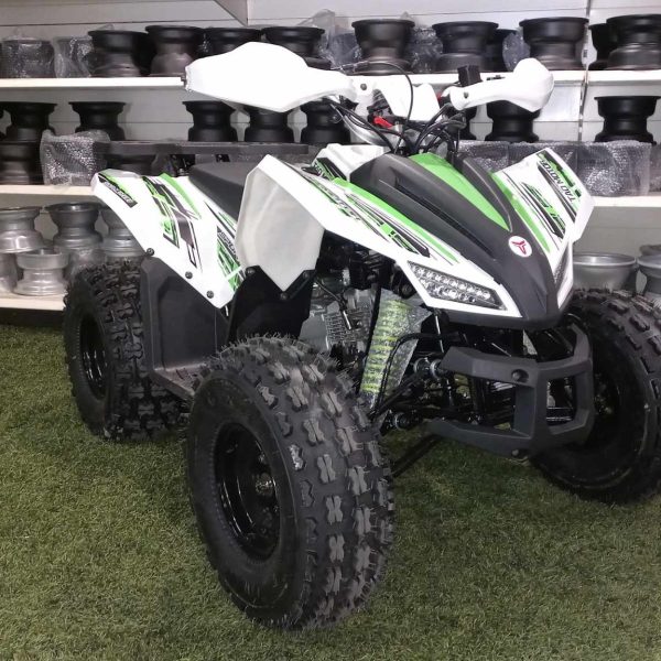 A Gyerek quad 125cc Coyote Fehér/zöld egy prémium minőségű, modern megjelenésű quad 8–9 éves kortól, mely extra erős vázzal és futóművel rendelkezik. Kifejezetten tartós kialakítása miatt a nagyobb terhelést is kiválóan bírja, így akár kisebb felnőttek is használhatják.